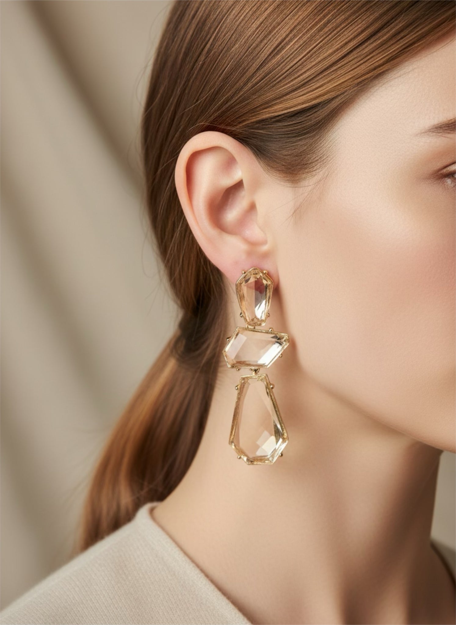 These Lucite Drop Statement Earrings are perfect for spring and summer! They are 3 inches long, a mix of pastel blues and greens, clear lucite or pink and turquoise, with a modern geometric shape. Make an understated statement
