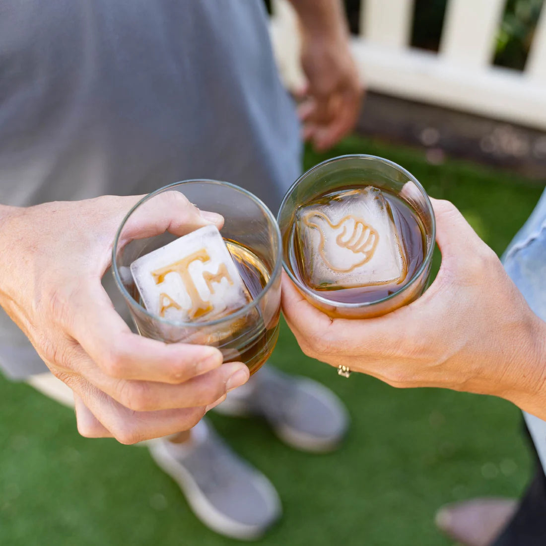 The Aggie ice cube tray Bundle combines the most iconic logos in the NCAA along with the State of Texas. Every Aggie Bundle comes with a custom Aggie rOks tray, 2 ATM, 2 Gig'Em Thumbs and 2 State of Texas inserts. Your white inserts will come packaged in a custom Aggie logo insert bag.